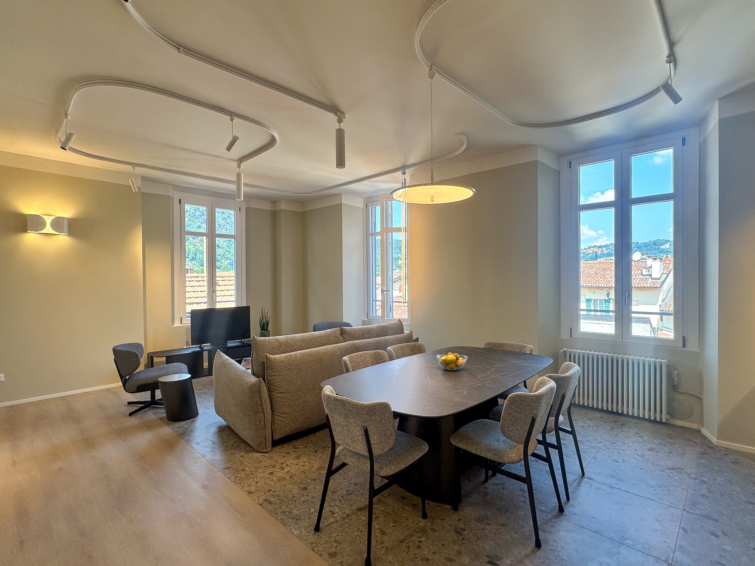 A grand historic 19th century building in the heart of the Walled City next to Piazza San Fedele boasts on the top floor a newly renovated two bedroom apartment with refined finishes, custom made furniture as well as marquee Italian brands like Floss and Bonaldo. With rare views of the city skyline “Casa Elysium” offers a luxury stay in the heart of Como and away from the hustle and bustle characteristic of most properties in the city center.