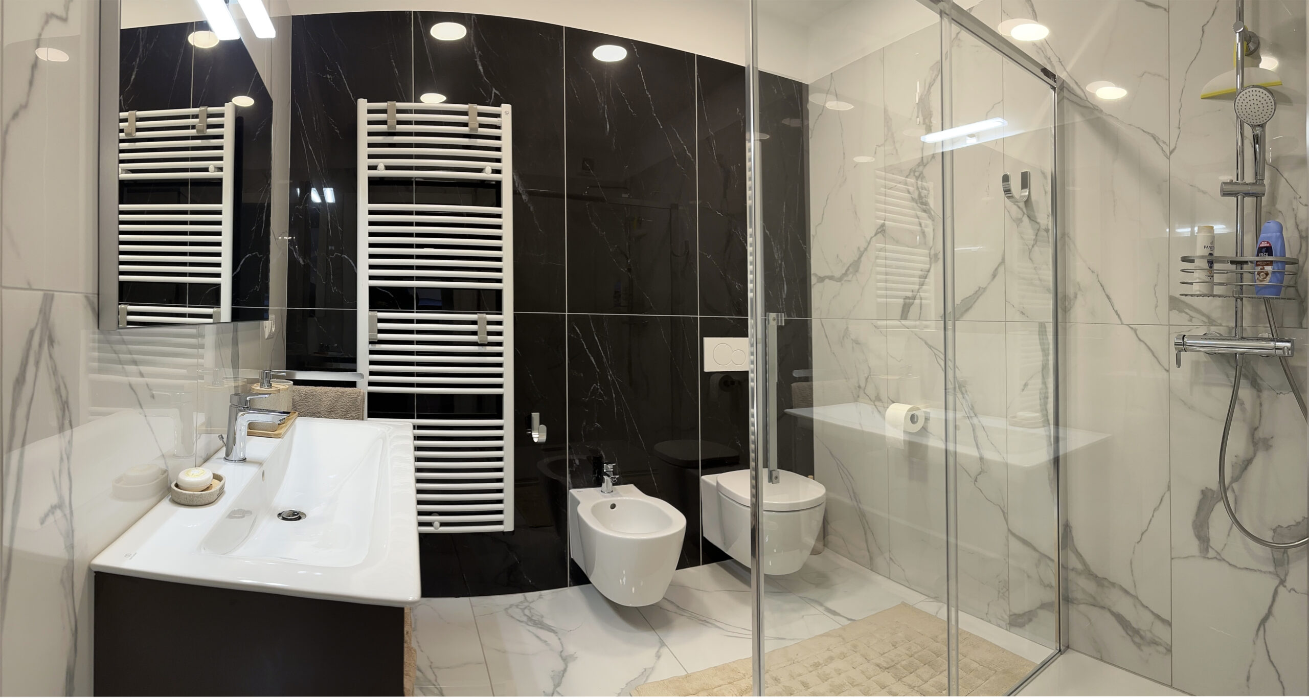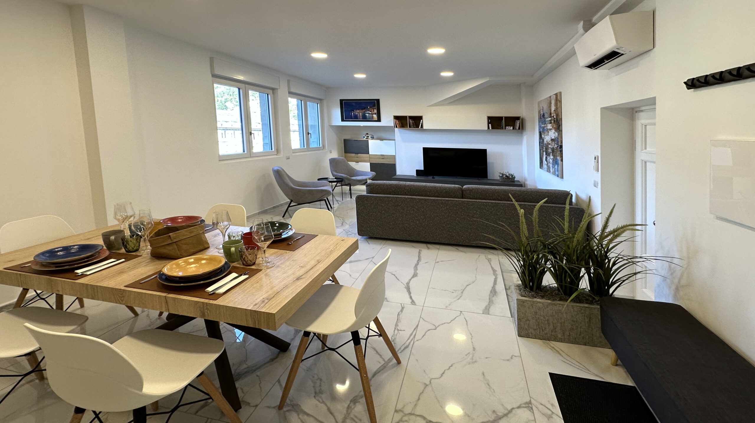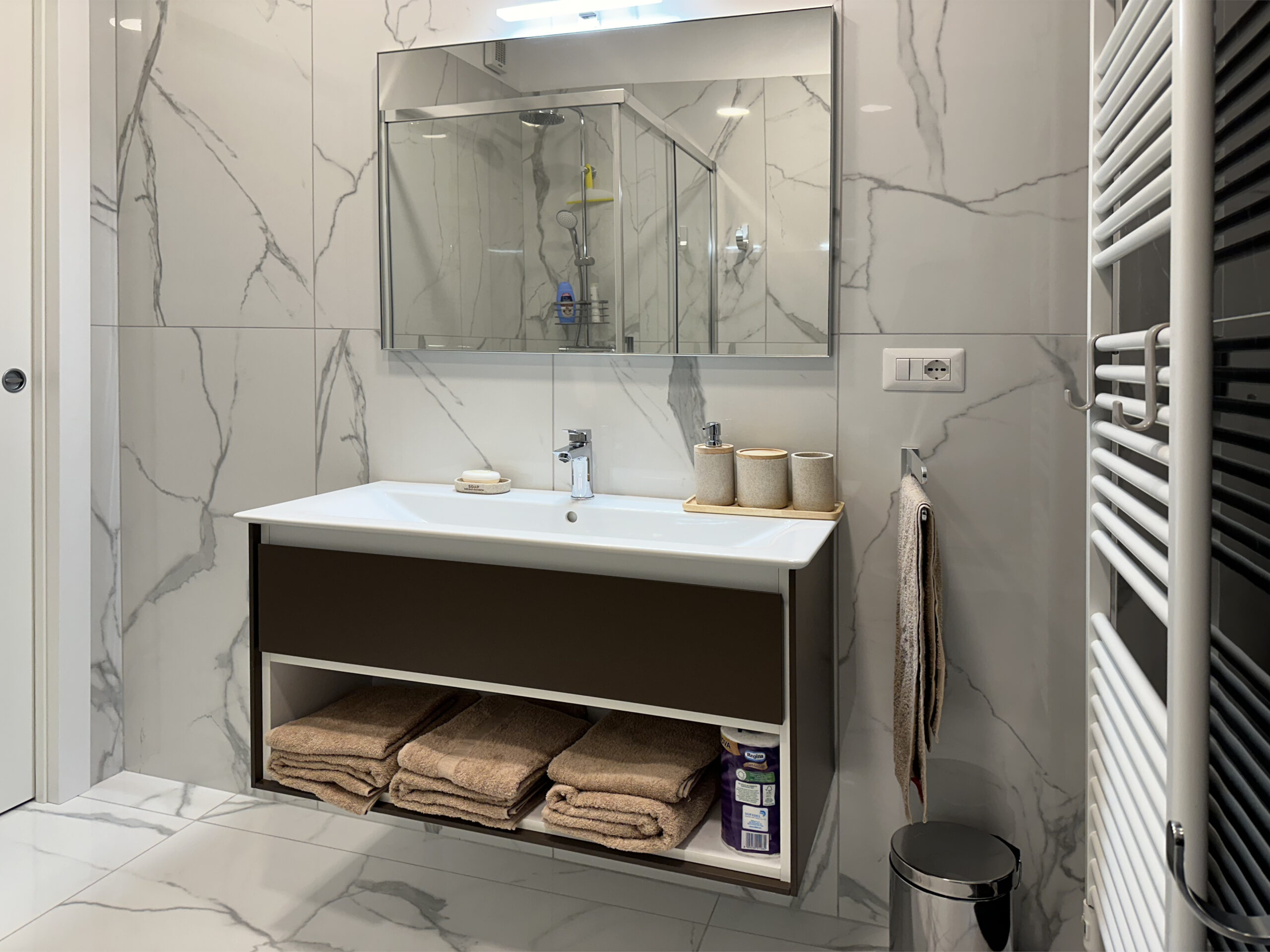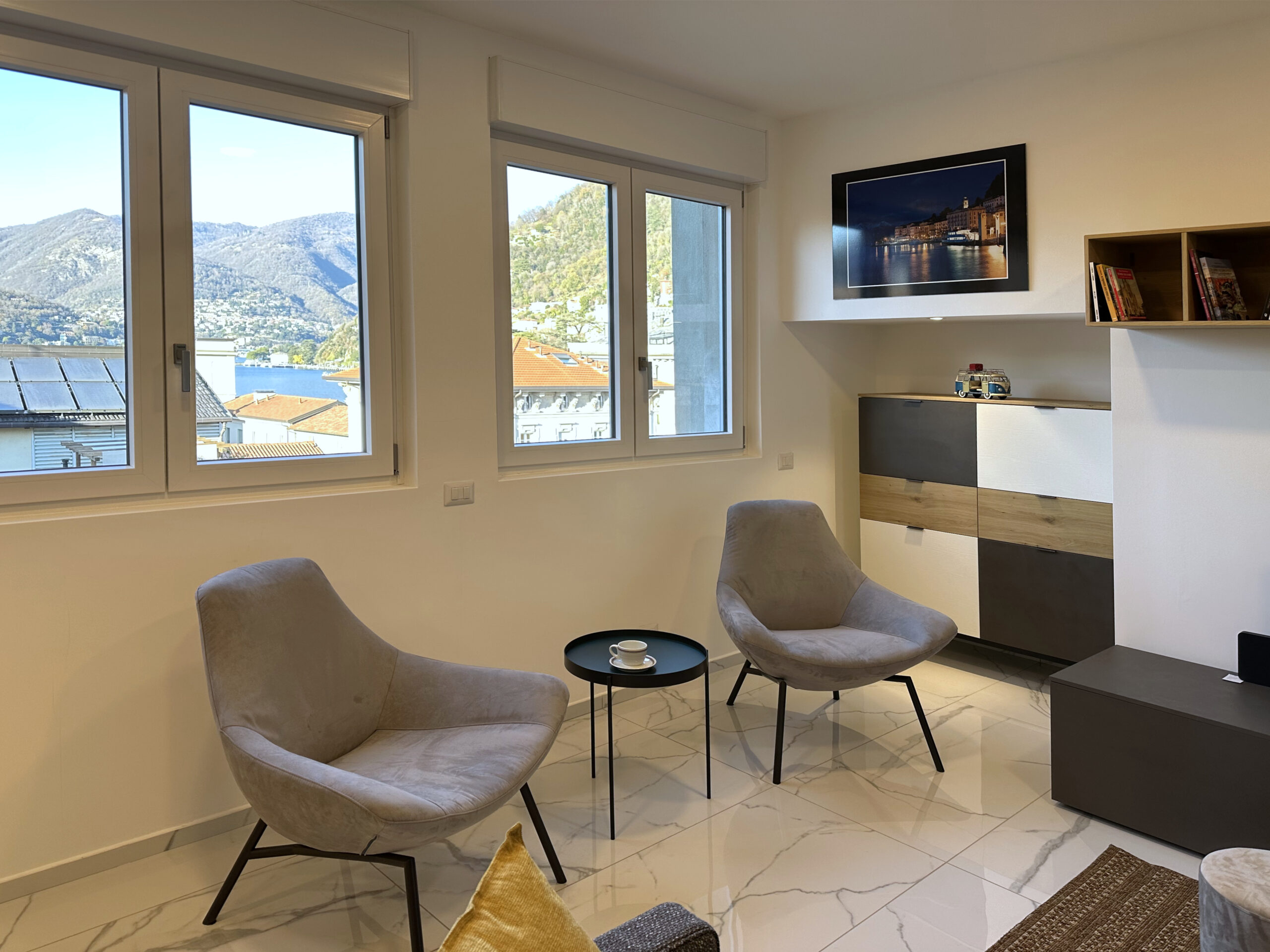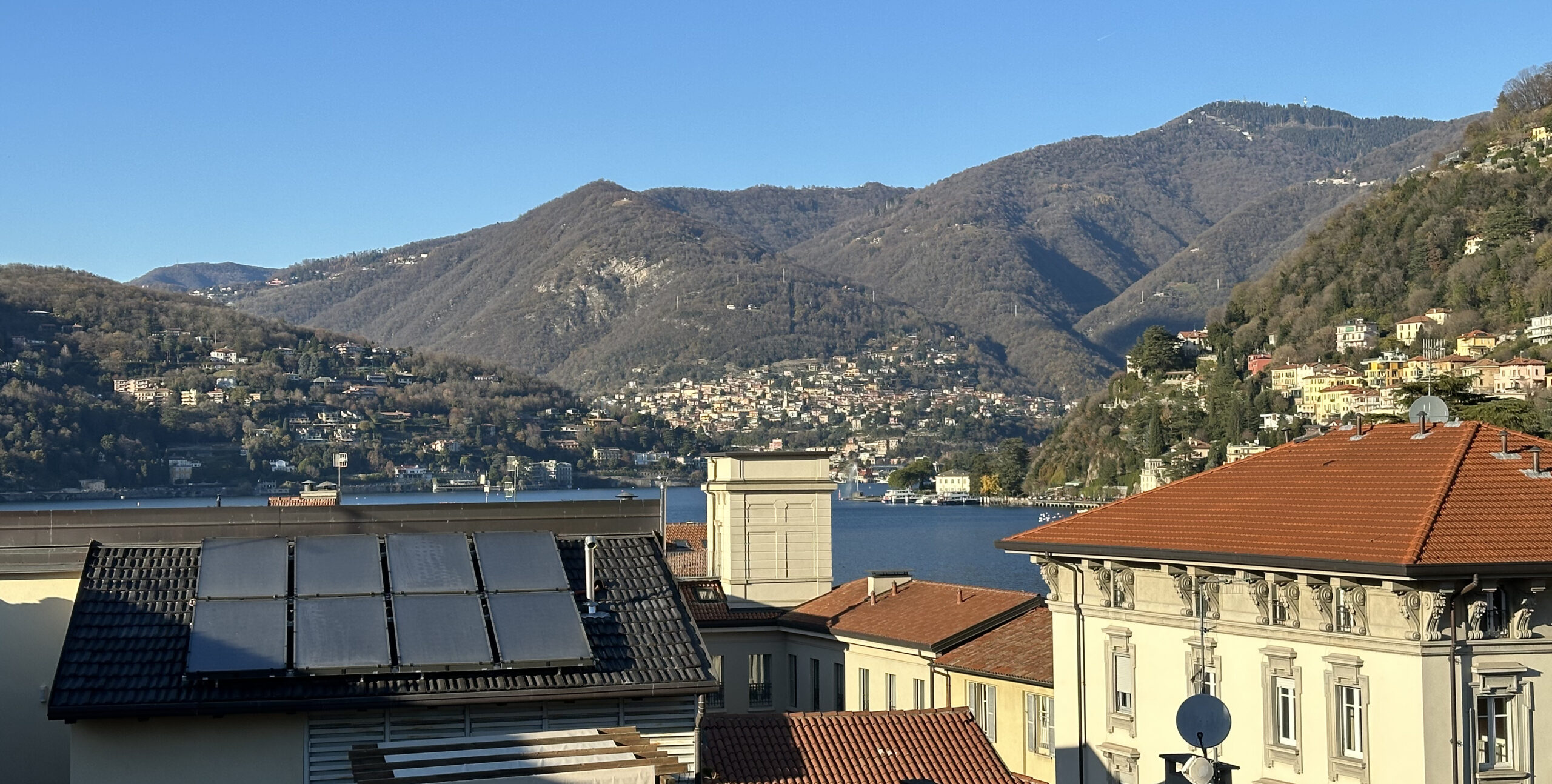 Keep it simple at this peaceful and centrally-located place. A newly renovated spacious one bedroom apartment in the historic Mantovani building. Modern, bright and stylishly decorated with stunning views of lake Como, the surrounding mountains and Como's red rooftops. Convenience is at your doorstep, with shops, restaurants, cafes, ferry boat landing, and the train station all within walking distance. Modern amenities make this haven a perfect blend of comfort and sophistication. Situated on the fifth and top floor with elevator, this one bedroom apartment quiet and full of light. It is comprises of a bedroom with a queen size bed, lots of wardrobe space and a view the funicular going up to Brunate. The bathroom is large with a spacious shower. The apartment also features a modern kitchen fully equipped with dining area dishwasher, washing machine, coffee machine , tea kettle, etc. The living room with lake views is the perfect setting to relax in comfort. The living room comes euipped with a sofa bed for 2 more guests