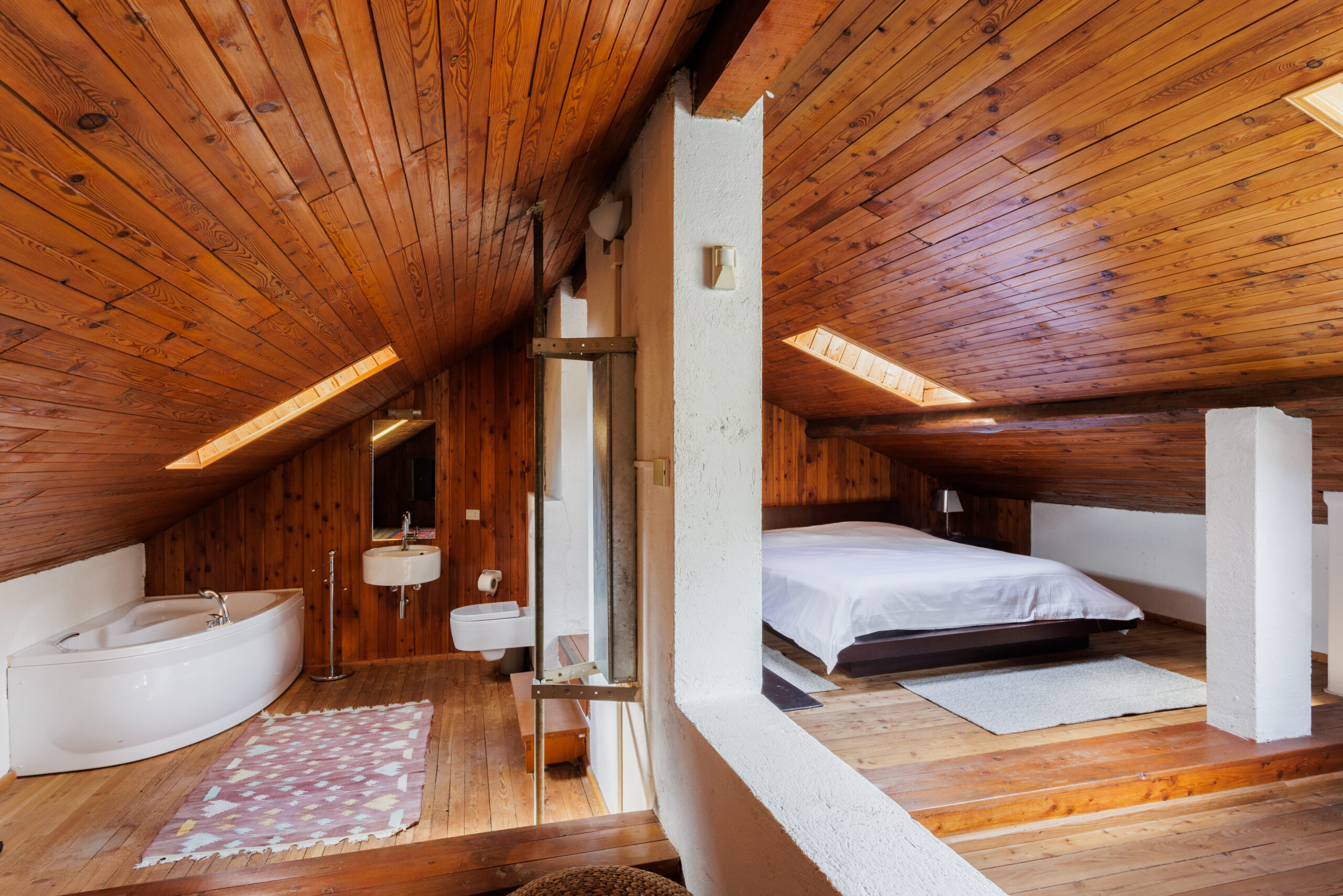 - A luxurious hot tub, ideal for relaxing after a workout or enjoying moments of leisure. The position of the tub, overlooking the lake, allows you to immerse yourself in the warm water and enjoy the breathtaking view, both day and night.